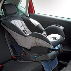 Universal-sized baby car seat protector to reduce stains, smells, and indentations.