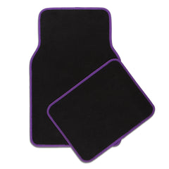 Carpet material, universal-sized car mats with a unique design. Protects the floor of your car while also adding a pop of color to your car's interior.