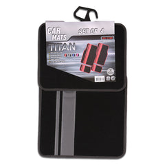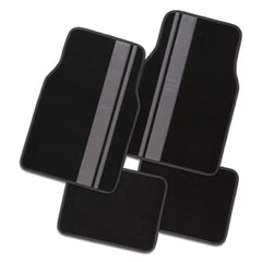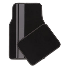 Carpet material, universal-sized car mats with a cool design. Protects the floor of your car while also adding a pop of color to your car's interior.