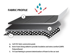 - Tri-coat net lining: To prevent foam deterioration to the car seat.