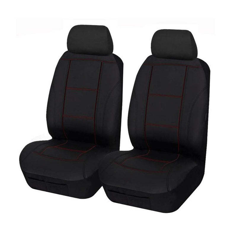 Universal Lavish PU Leather - Front Seat Covers Size 30/35 | Black/Red Stitching