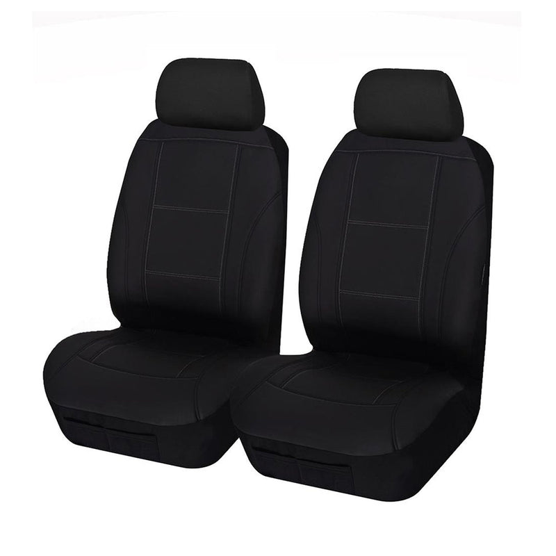 Universal Lavish PU Leather - Front Seat Covers Size 30/35 | Black/White Stitching