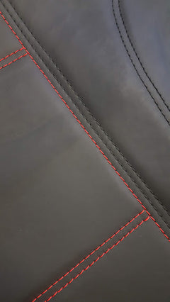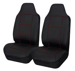Universal Lavish PU Leather - Front Seat Covers Size 60/25 | Black/Red Stitching