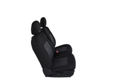 Universal Premium Front Seat CoversAre Specifically Designed WithStylish Hard Wearing Jacquard Fabric. Modern Design Fabric With Intricate Woven Pattern Inlay Centre And Contrast With Breathable Jacquard Knitted Fabric For Shoulders And Headrests.